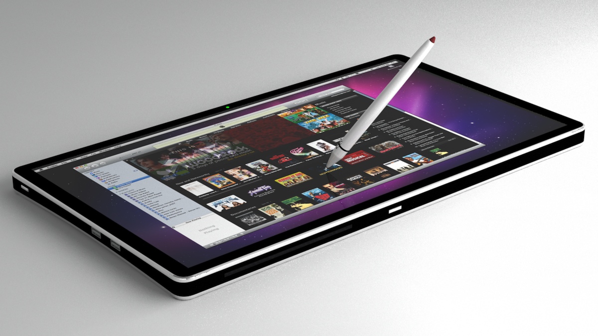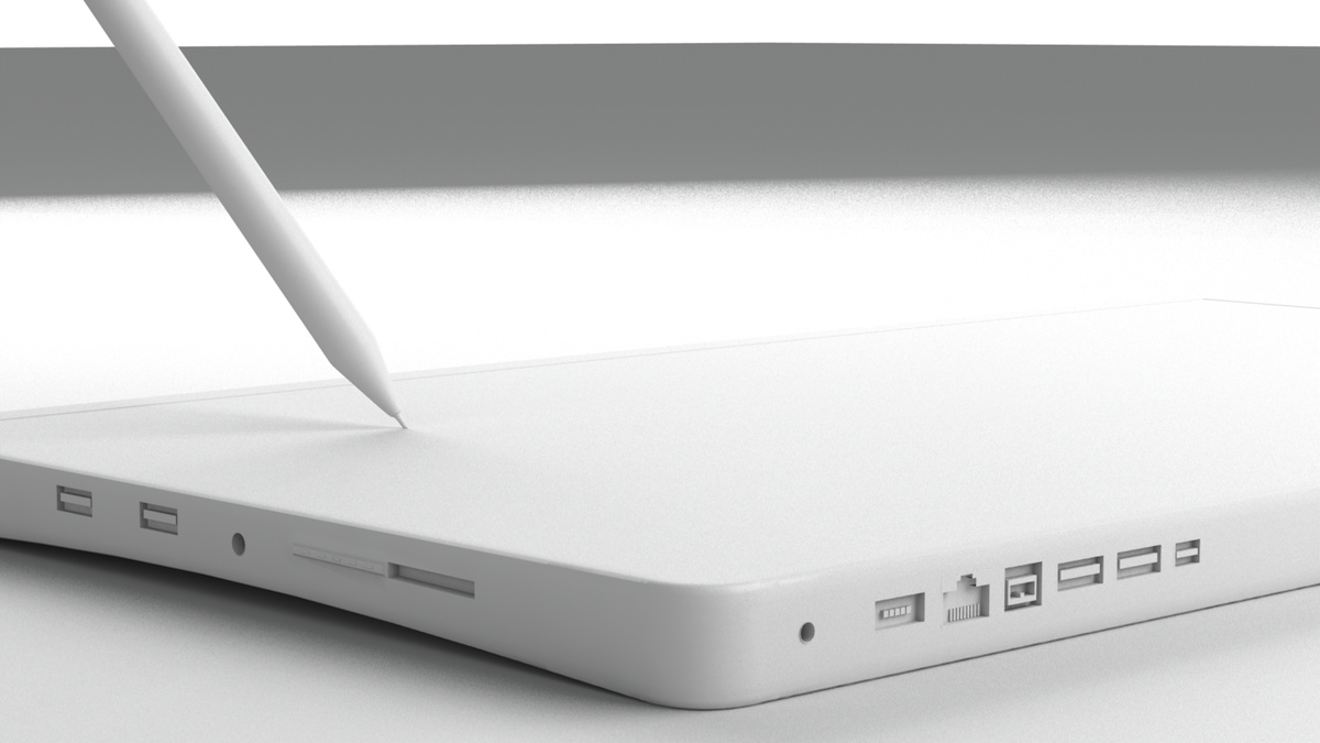 Before the Apple iPad was released, many 3D artists were speculating as to what it might be, or individually, what we wanted it to be. My first version (more like a touch notebook) was featured in the October 2009 issue of MacLife Magazine. Later, an updated version of it (below) was one of the entries in the iLounge "Design the Apple Tablet" Contest.