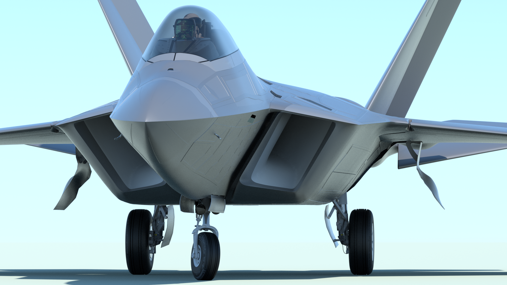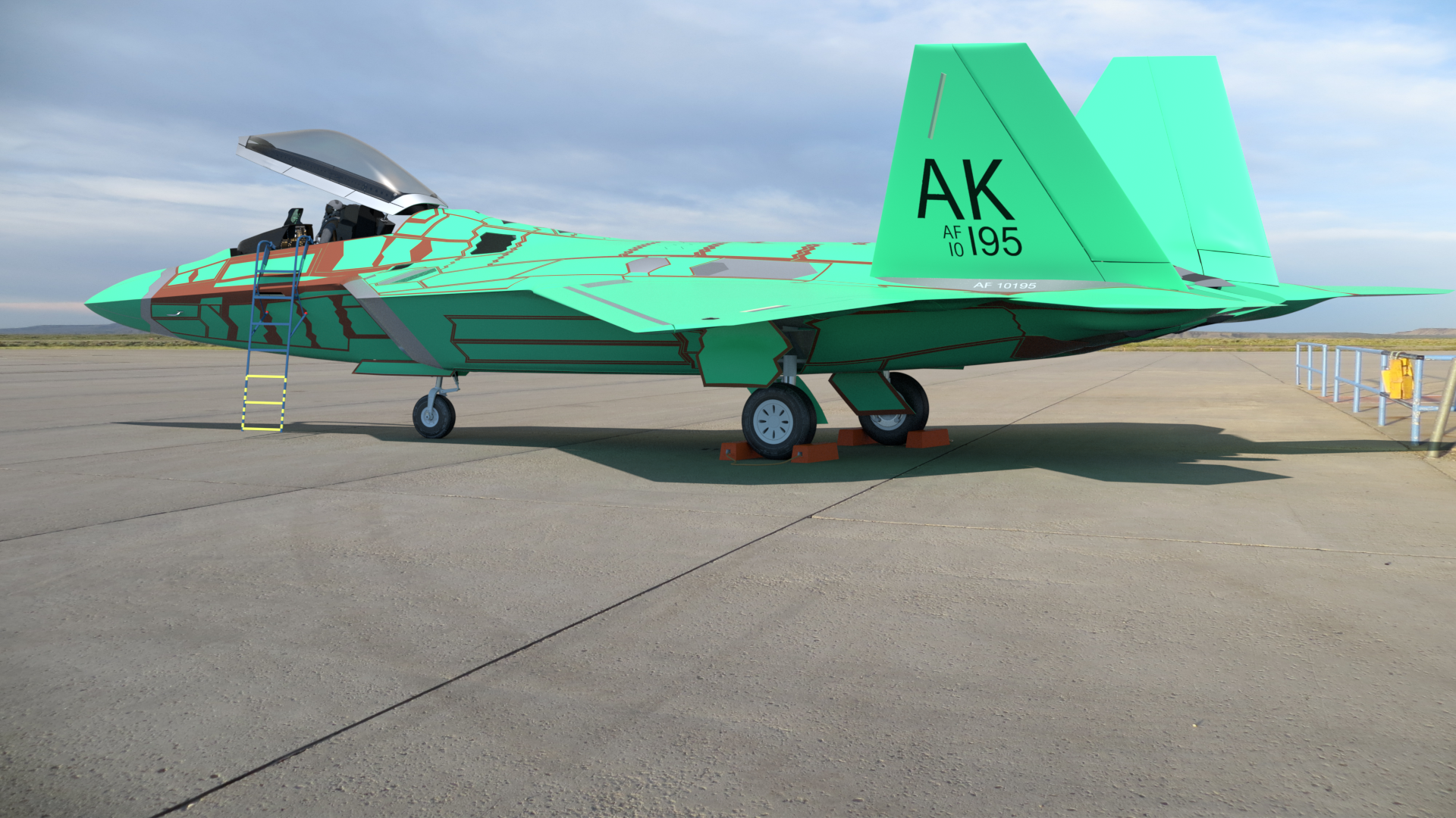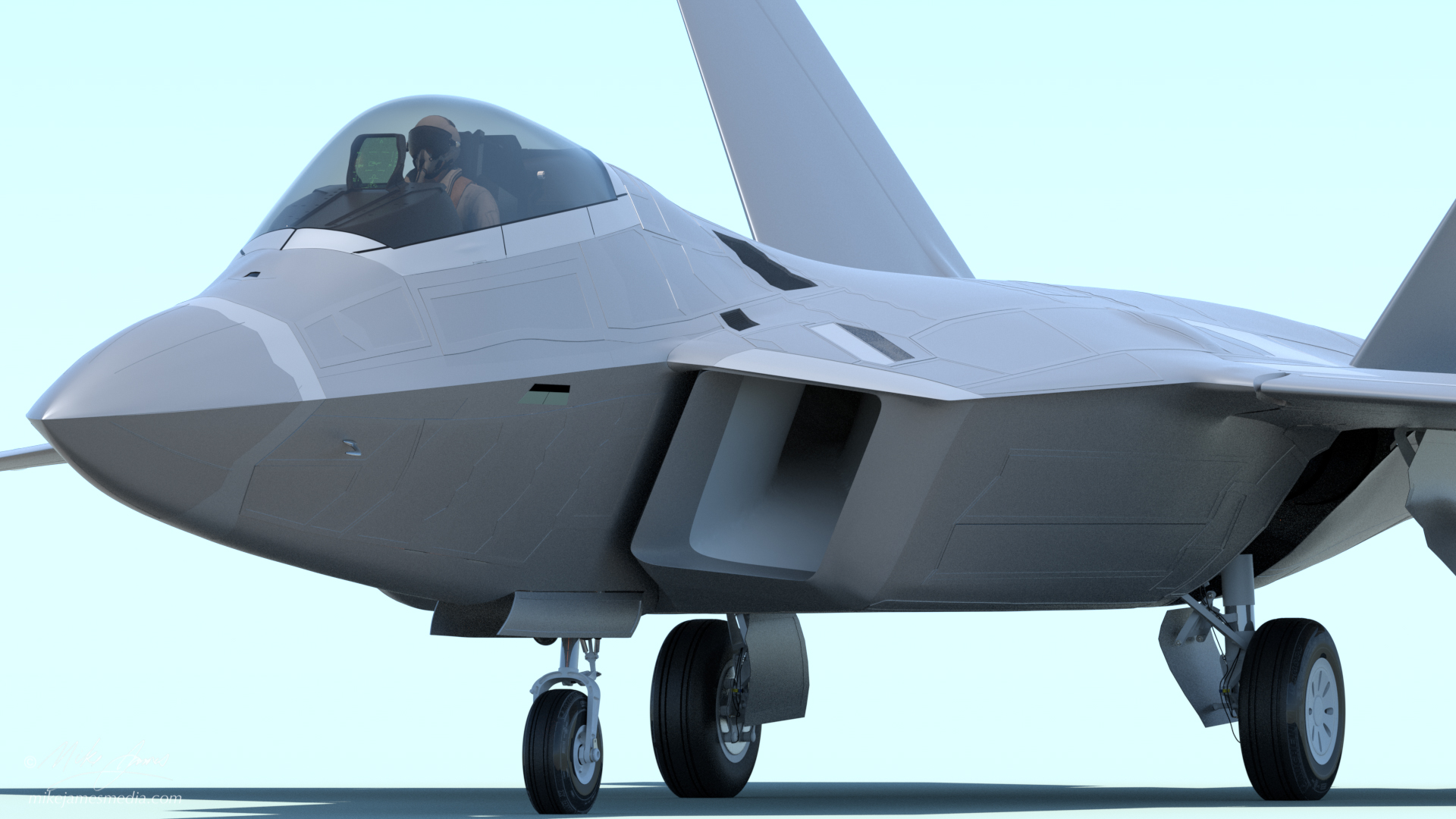 - Exterior geometry was based on Lockheed Martin drawings, as well as hundreds of photos. These include quite a number of photos taken by me here in Anchorage, where we have a squadron of Raptors.