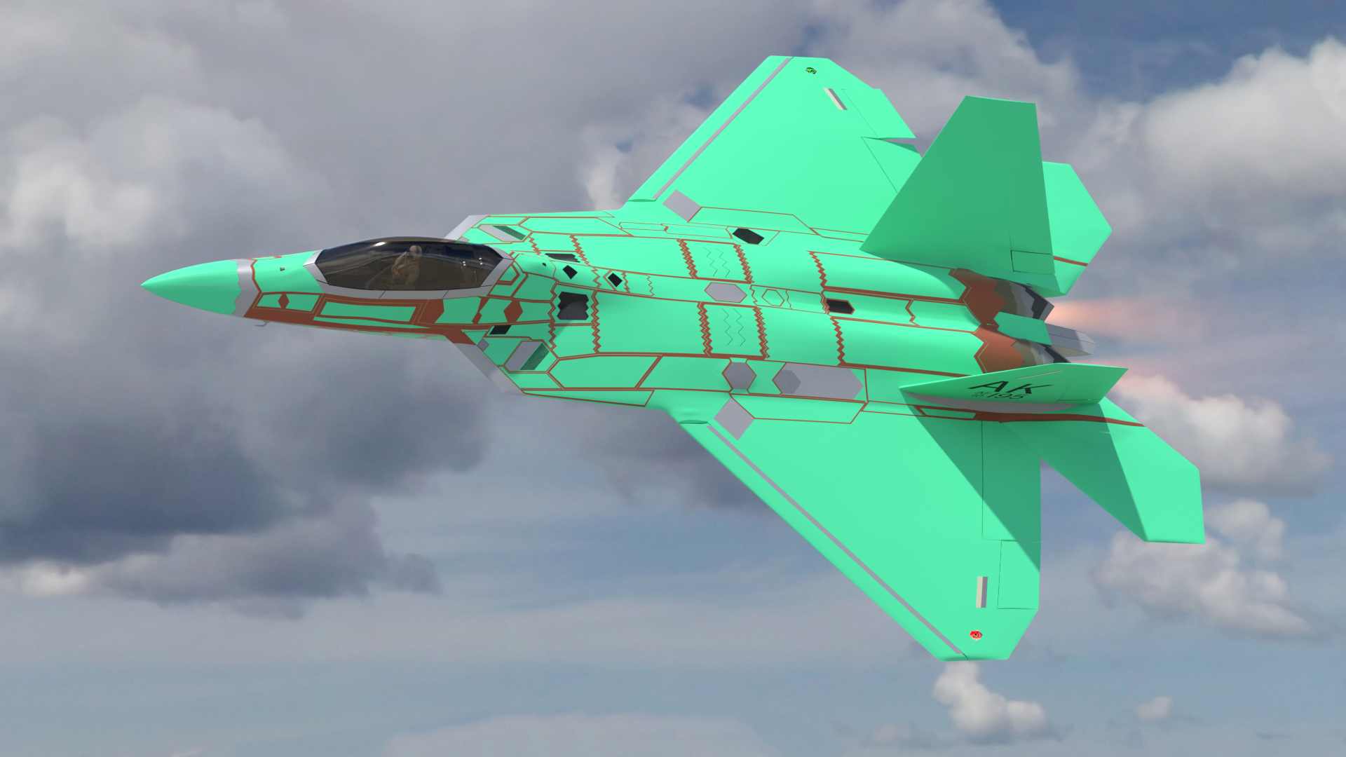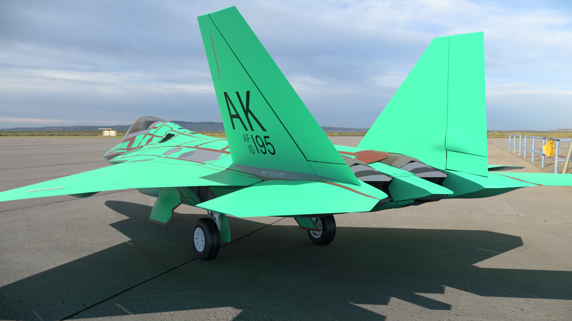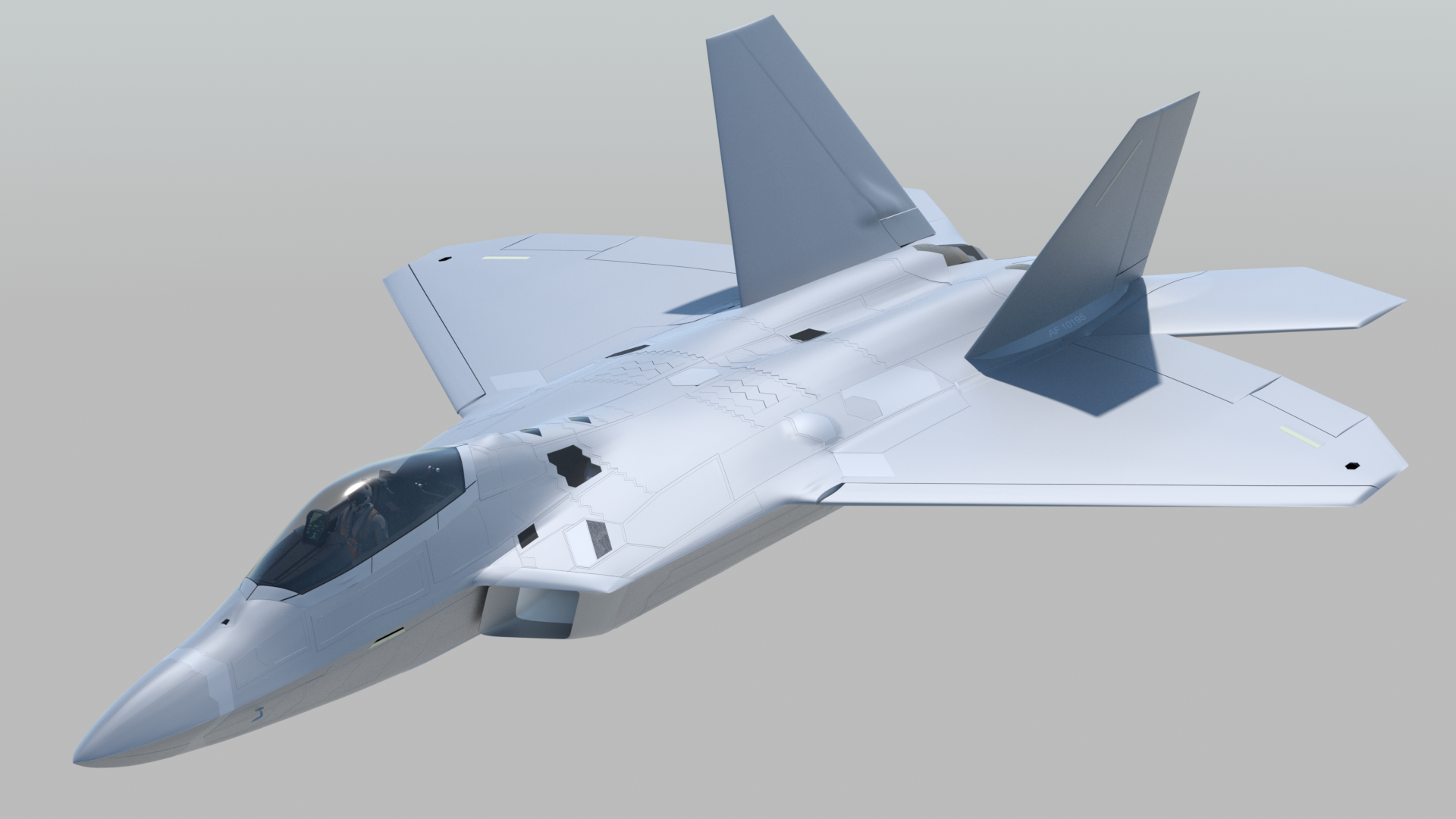 - Exterior geometry was based on Lockheed Martin drawings, as well as hundreds of photos. These include quite a number of photos taken by me here in Anchorage, where we have a squadron of Raptors.