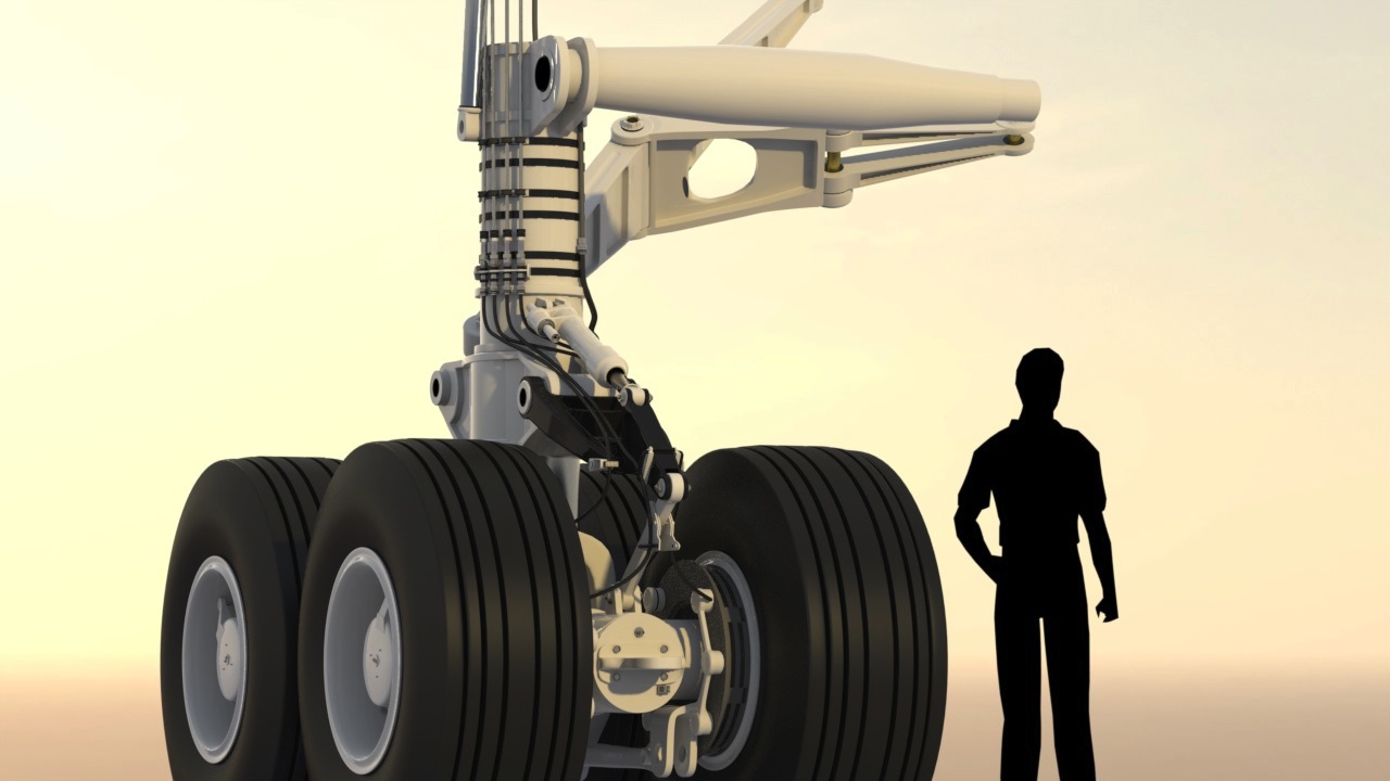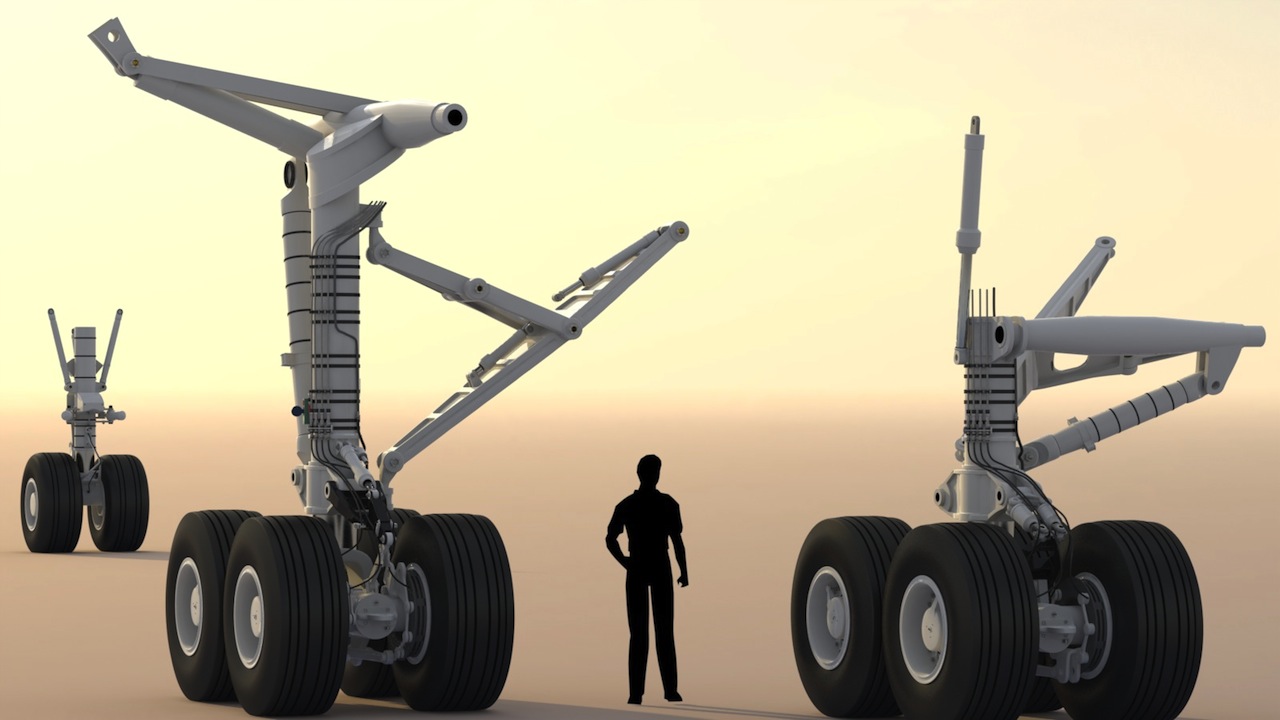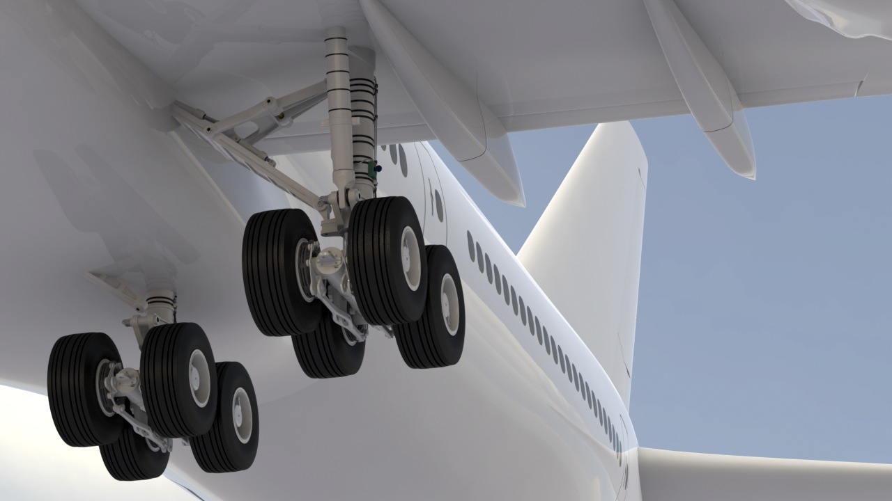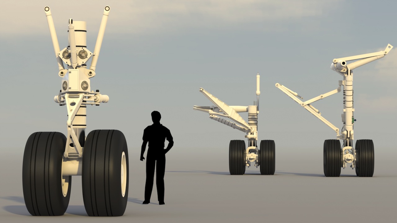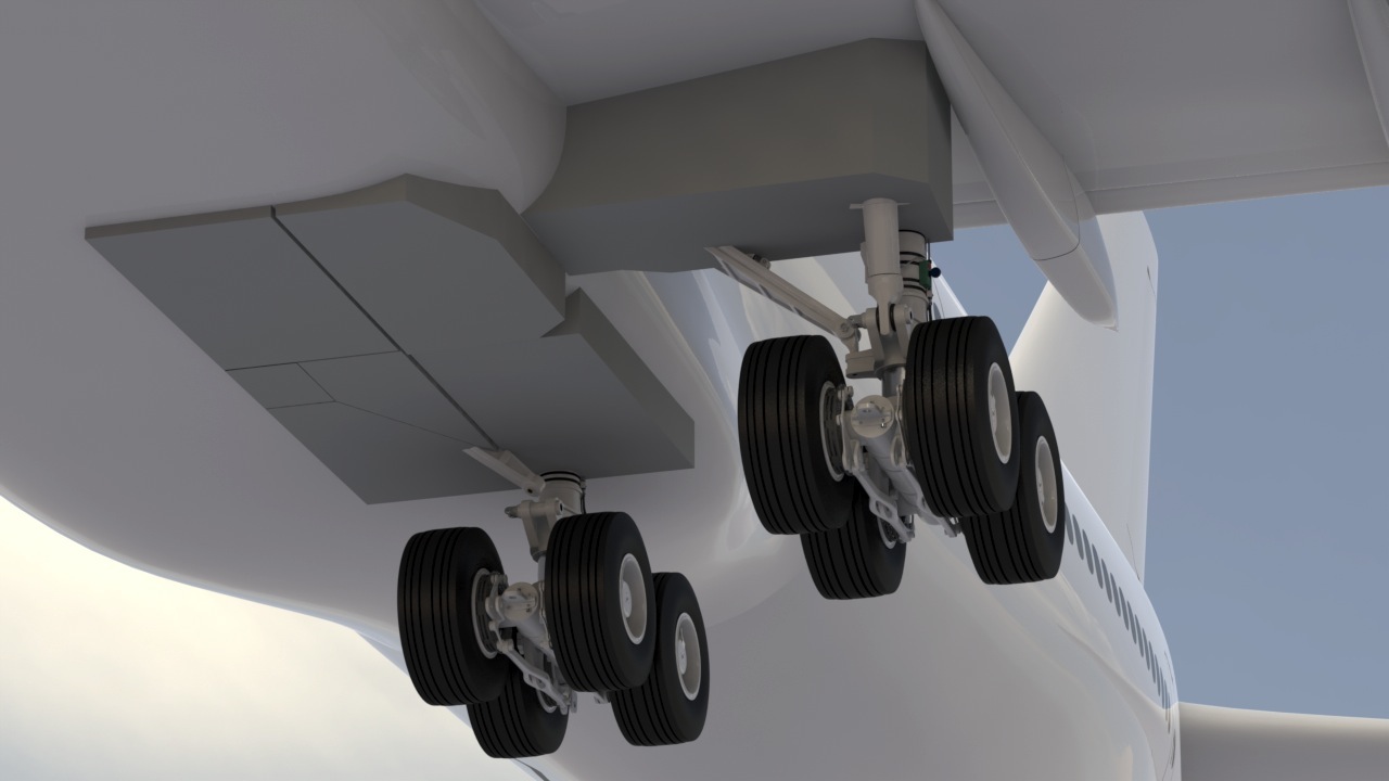 Below, two renders of the main gear, one showing the door cutters I'm working on