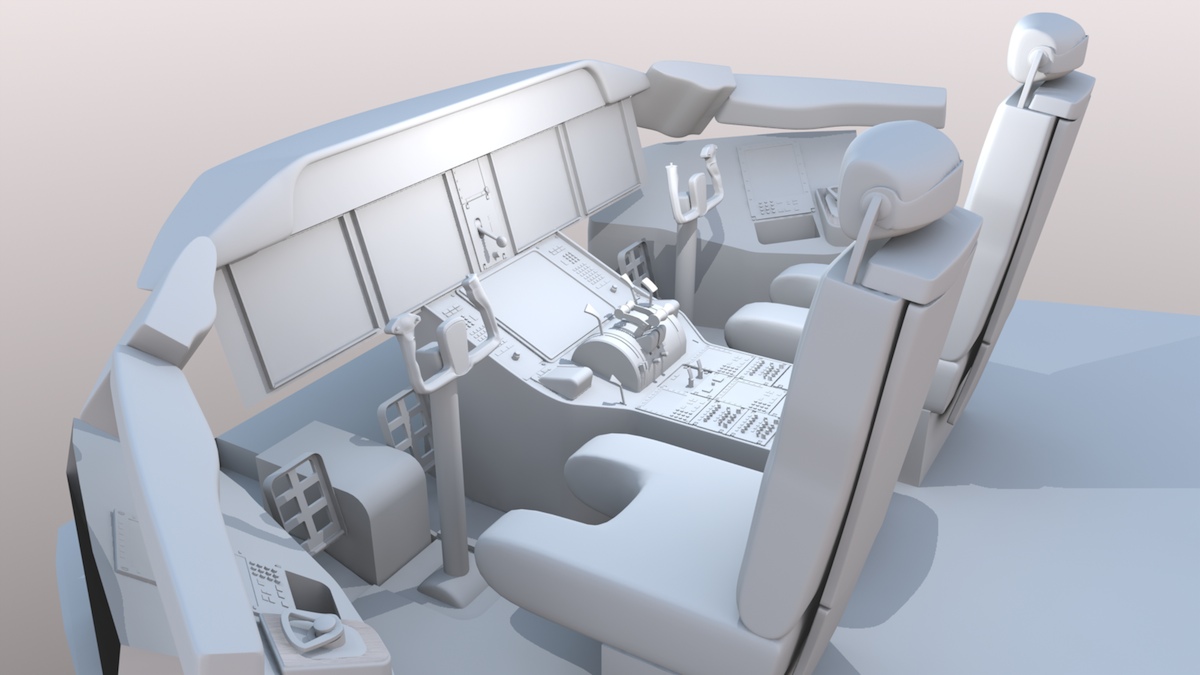 Here's the cockpit as it stands today. You can see that all the detail is actual geometry, not texture maps. As of today, all the surfaces simply have textures, as in the second image. When all the geometry is in place, then I'll add some image maps for the various labels.