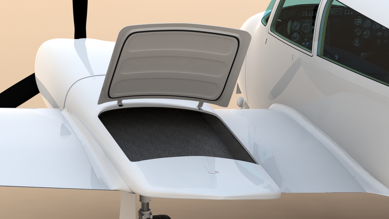 Part of the rebuilding process included the cabin door and baggage door, shown here open, then closed.