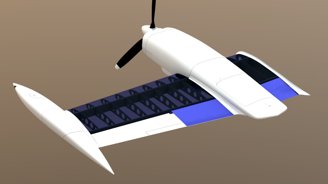 I've located the two main wing spars, and created all the primary ribs. More detail will be added to these parts as the project continues, but getting these in place was important. (The transparent blue outer skin shows where it covers the inboard flaps.)