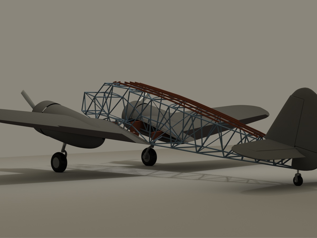 I'll have some documentation soon, telling me things like the actual tubing diameters used in the aircraft's construction. In the meantime, I guessed it at 1 inch diameter, and did a run-through on how I'll make the internal tubing structure. The diameter looks a little large to me, but it's a convincing effect, and was a good practice for later... Lots of this kind of thing in the actual aircraft.
