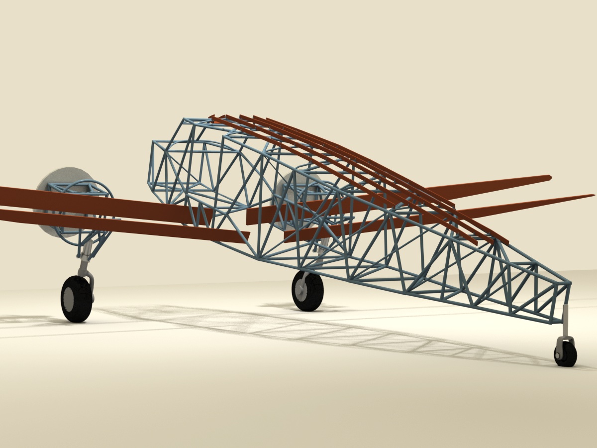 The wing spars on this aircraft are one piece, and run the entire length of the wing. During this modeling phase, you'll see each wing looking as though it has separate spars, just because I sometimes model with symmetry on. (both wings at once) Later, I'll join the spars, to look like the original one-piece design.