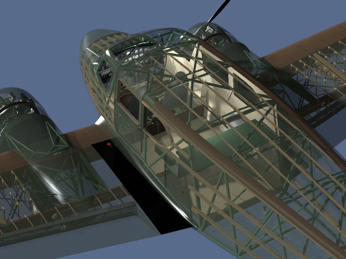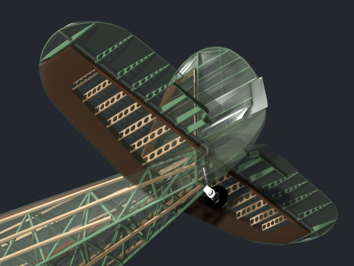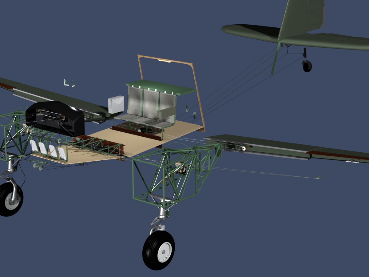 I've spent some time fine-tuning all the control cables and chains, and in that process, have added the chains for the landing gear drive system and flap system. I don't think I'll add the internal cables for the trim system (separate from the main controls) until the end, because I may not have enough RAM left to do it. And, they don't show anyway, with the cabin interior liner installed. Gotta save what's left for the "paint".