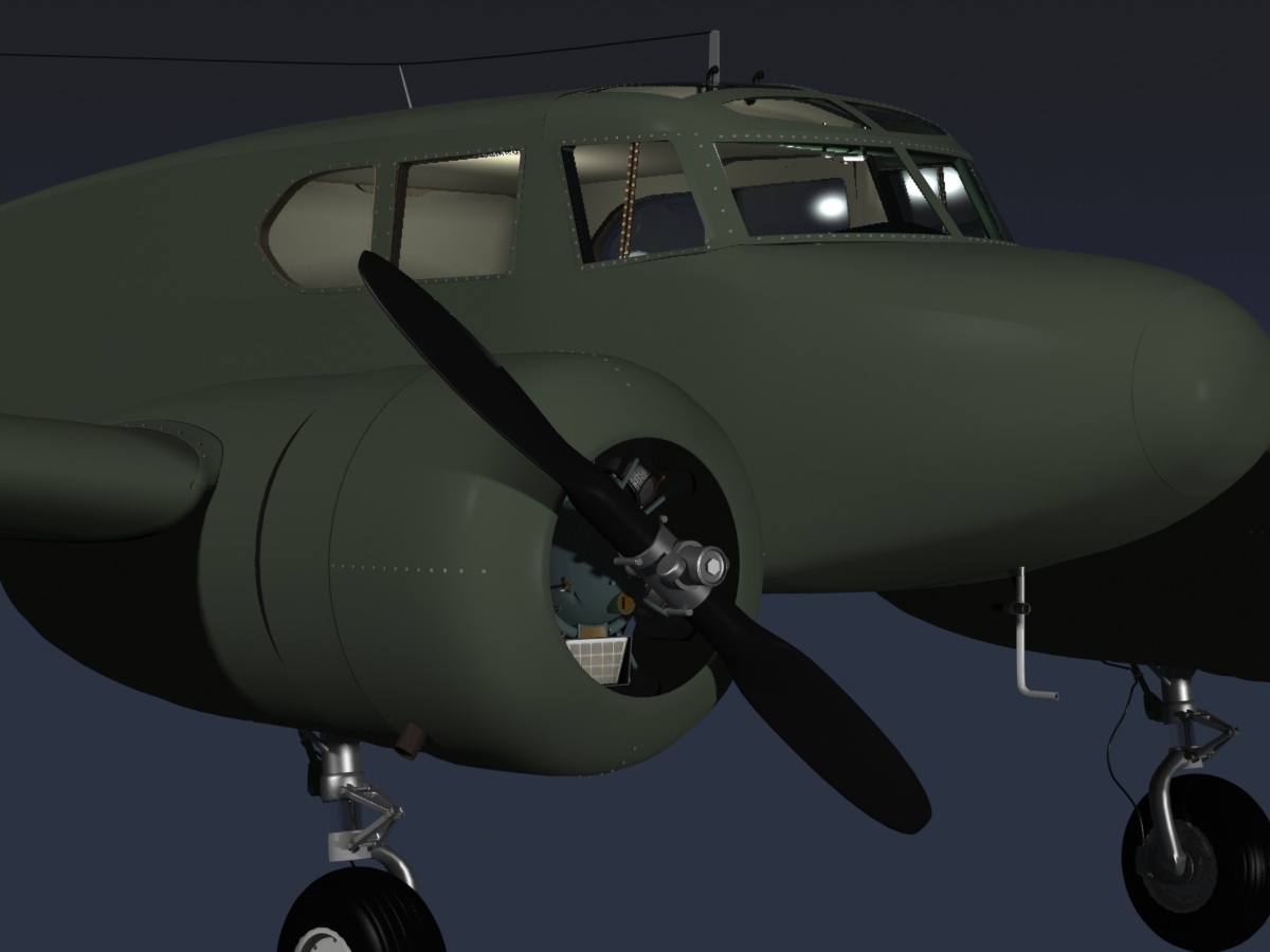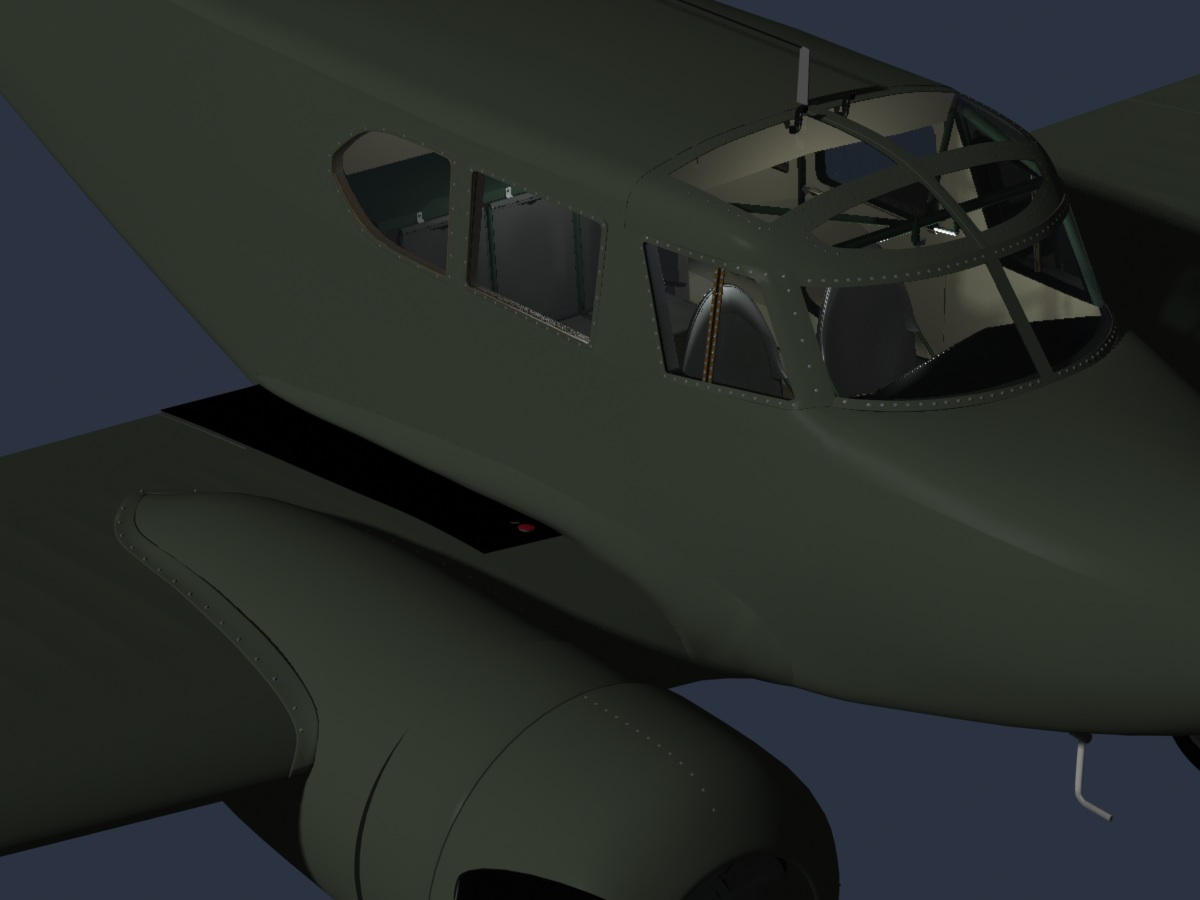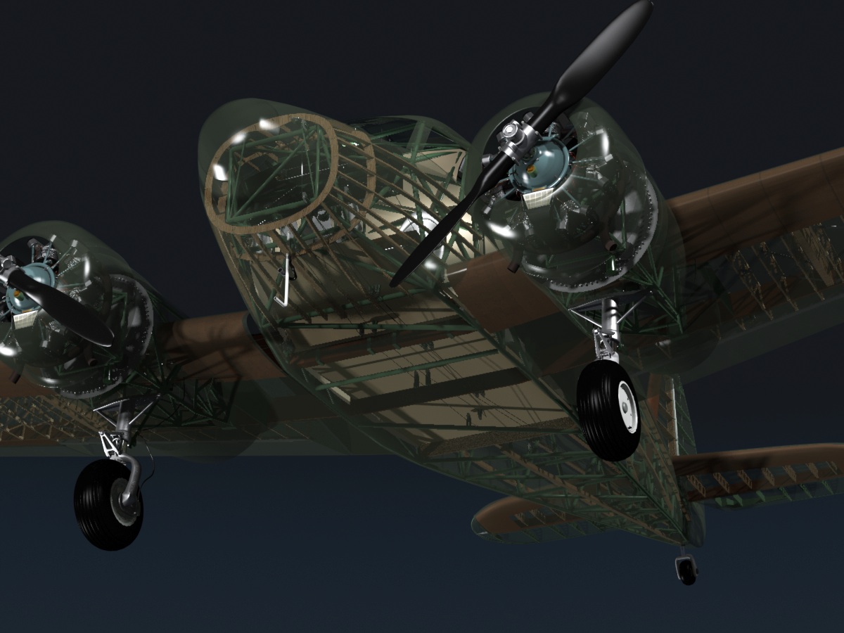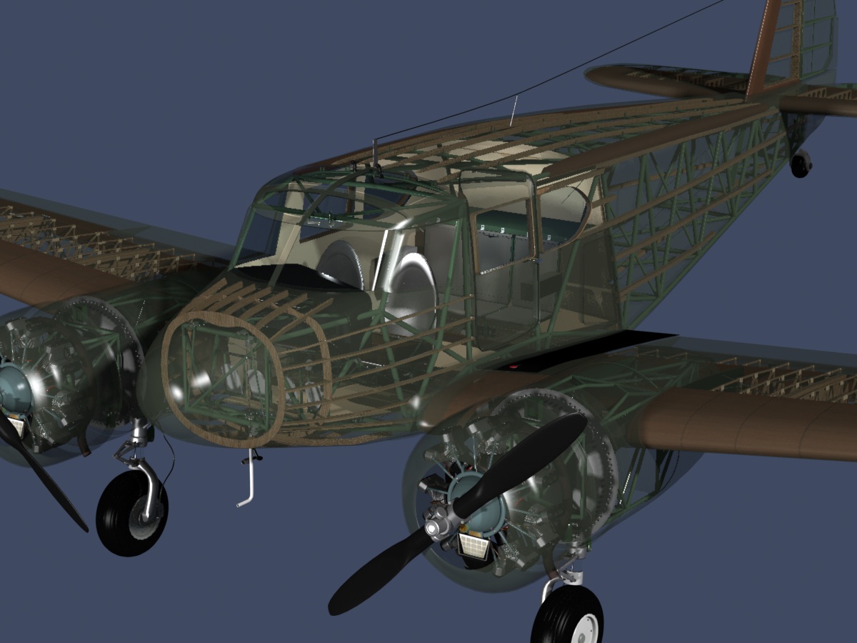 I've spent some time fine-tuning all the control cables and chains, and in that process, have added the chains for the landing gear drive system and flap system. I don't think I'll add the internal cables for the trim system (separate from the main controls) until the end, because I may not have enough RAM left to do it. And, they don't show anyway, with the cabin interior liner installed. Gotta save what's left for the "paint".