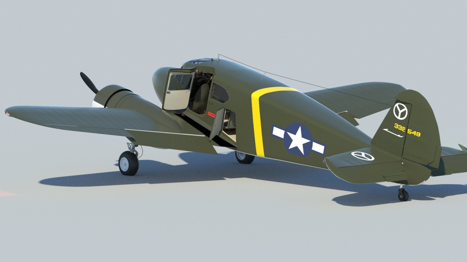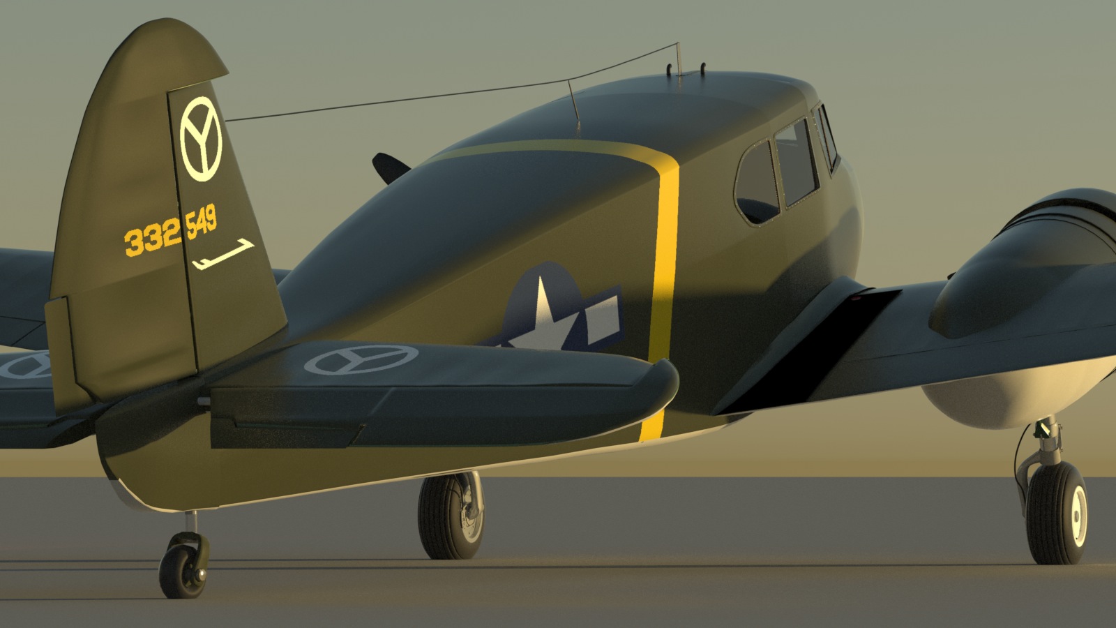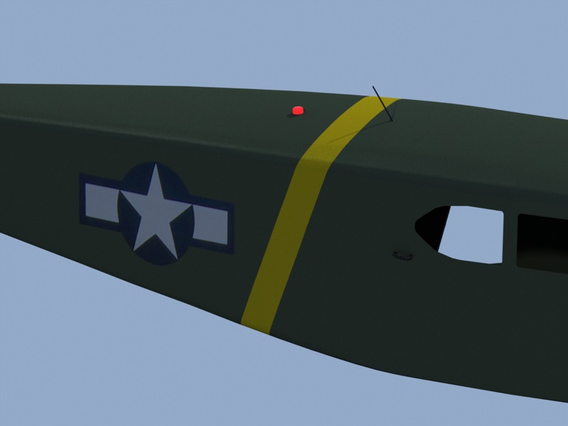 I'm starting to feel comfortable with MODO's basic UV tools, and managed to get the Army Air Corps insignia and the yellow stripe on the fuselage, where I wanted them. The rest of the markings on the plane should be relatively easy now.