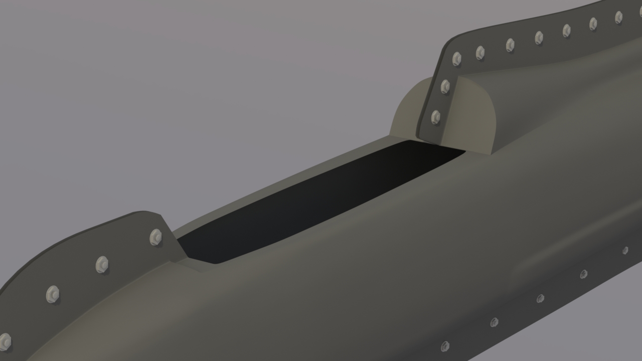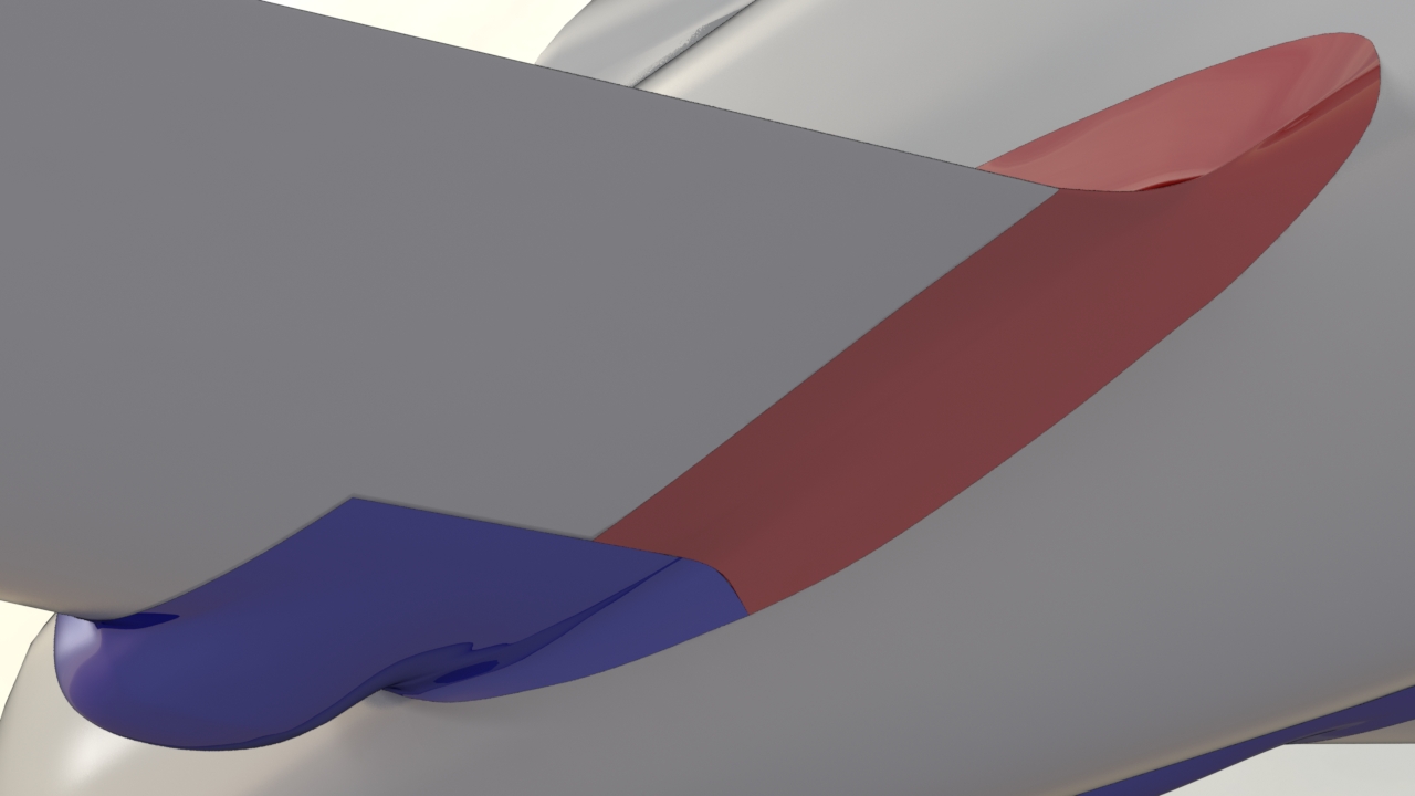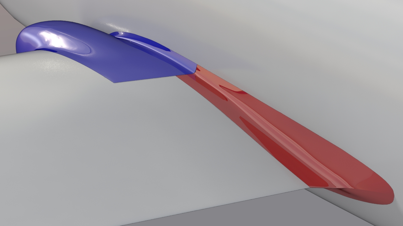 Here, the fairings have been split, and you can see the parts that are molded into the fuselage. (IGES file, rendered in Rhino)