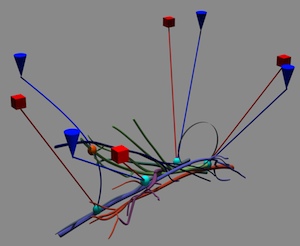 Sheila had an usual project in mind, involving the use of a large number of (organic-looking, (but fabricated) wooden and aluminum parts, for a project called "Spore". If you have a look at the image here, you can imagine how hard this project might be to visualize, either as small scale model, or on paper. None of this is "random". There were potentially a huge number of interference issues that had to be checked and eliminated. This piece is about 10 feet tall.