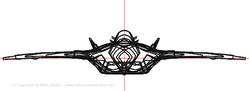 Since these slices matched the Lockheed Martin drawings so closely, I knew that Revell simply must have used the same drawings... Otherwise, you'd never find two separate artists who would end up with such a close match. And, since I believed that the Revell model was the most accurate one I had seen, this told me that for most things, I could trust the Lockheed Martin drawings. Be aware though, that they are obviously skewed, in a few places. Obviously, Lockheed Martin is not going to simply publish accurate engineering drawings of something like the F-22. (I use photos wherever possible, to try and make things the right shape, when the drawings don't make sense.)