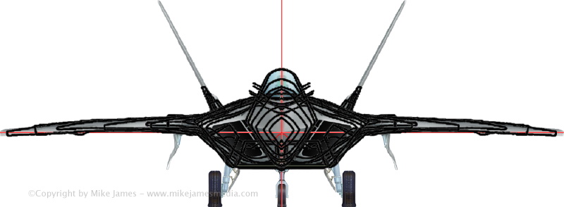 Until a couple of years ago, my usual approach to modeling aircraft in MODO was to begin with sub-d models, and when all the curves are where I want them, I would then freeze the model to hard polygons, so I could use boolean cutters to create doors, hatches, etc.. My earlier F-22 model was that kind of hard polygon model, and with the huge number of sawtooth-edged panels and hatches cut into it, rebuilding the fuselage alone would be a major project. So, to make this worthwhile, I've been collecting more and more information and compiling notes, to be as sure as possible that when I did restart, I'd be ready. Otherwise, it's quite easy to paint yourself into a corner with these shapes.