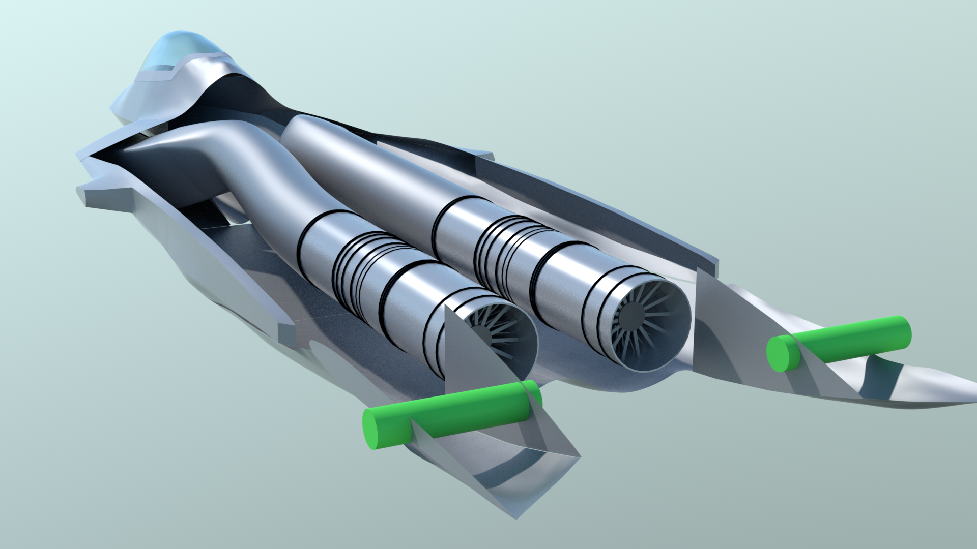 In reviewing my new documentation, I found another detail, which is that the intake ducts don’t have to completely diverge around the weapons bays, as I originally thought, The ducts do impinge slightly on both the side and bottom weapons bays, so I’ve adjusted both the ducts and the weapons bays accordingly.