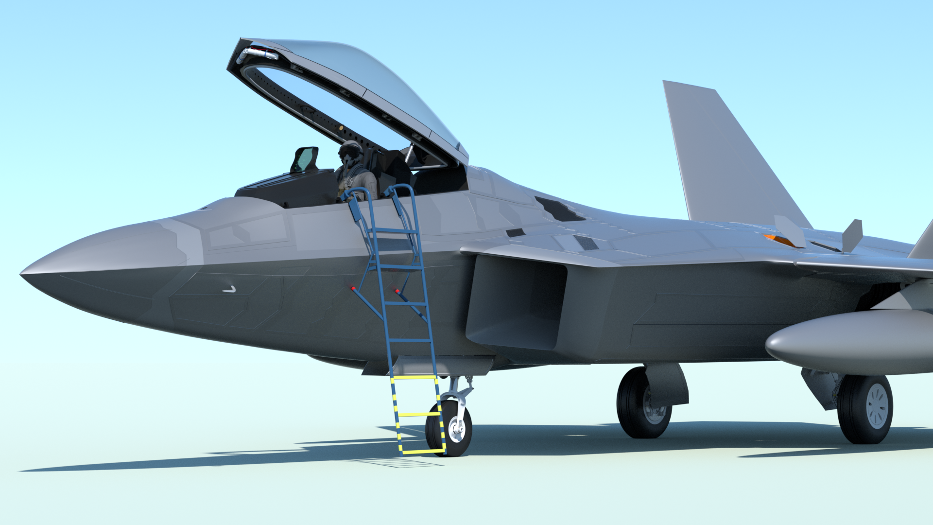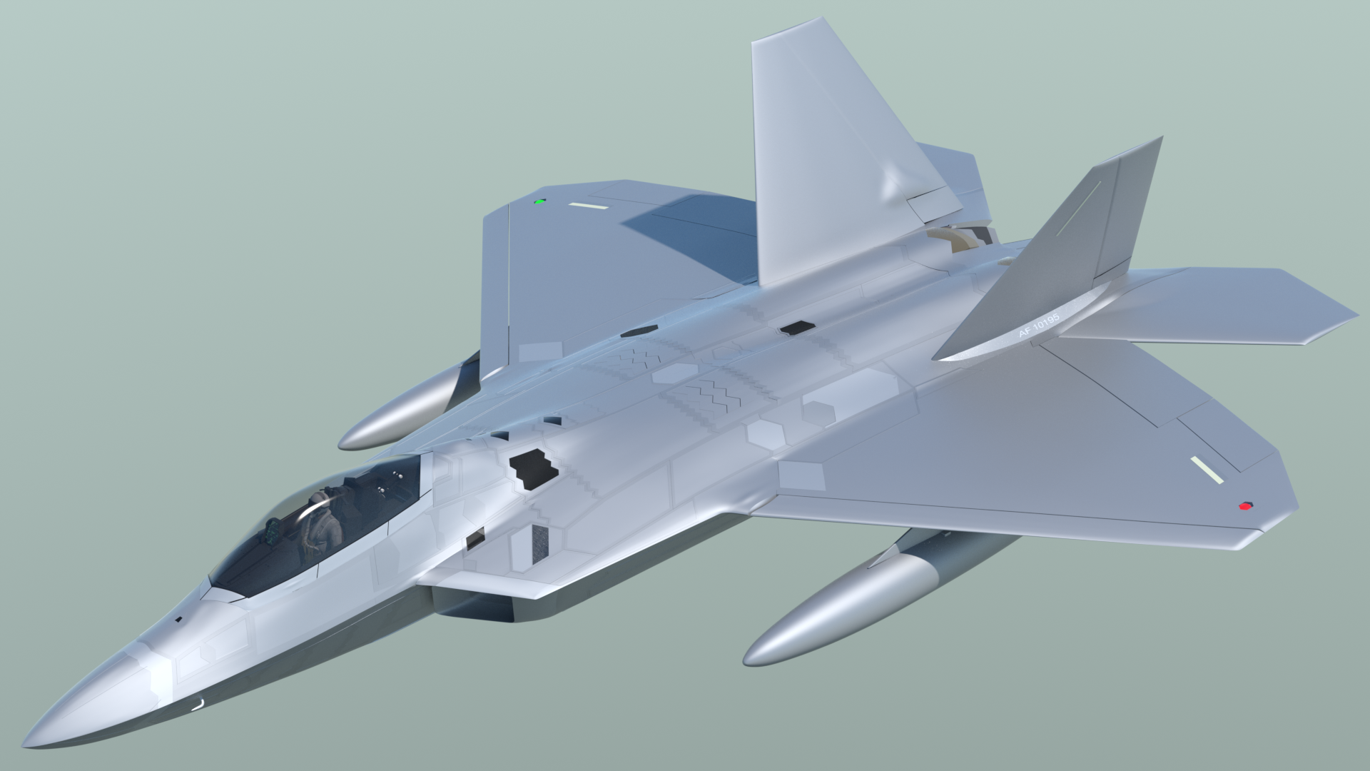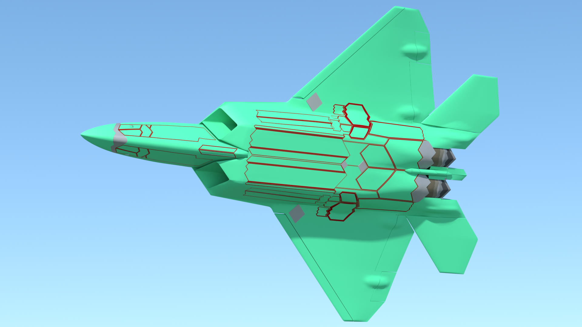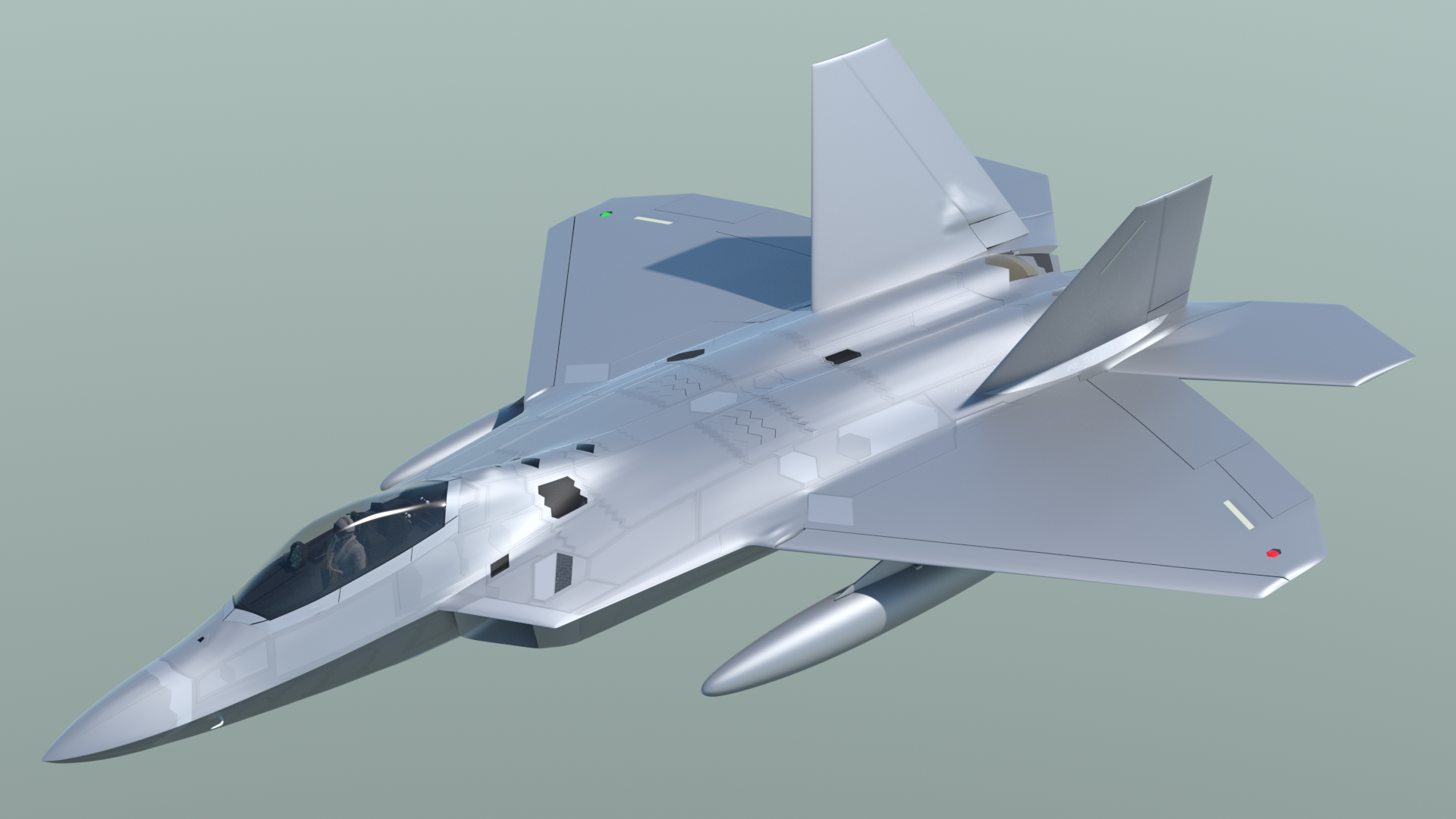 - The cockpit area. landing gear bays, and weapons bays have been simplified from the previous model, but in such a way that more accurate detailing can be added later. This basic "blocking in" of those parts allows exterior renders to be done, while I'm still working on the interior details.