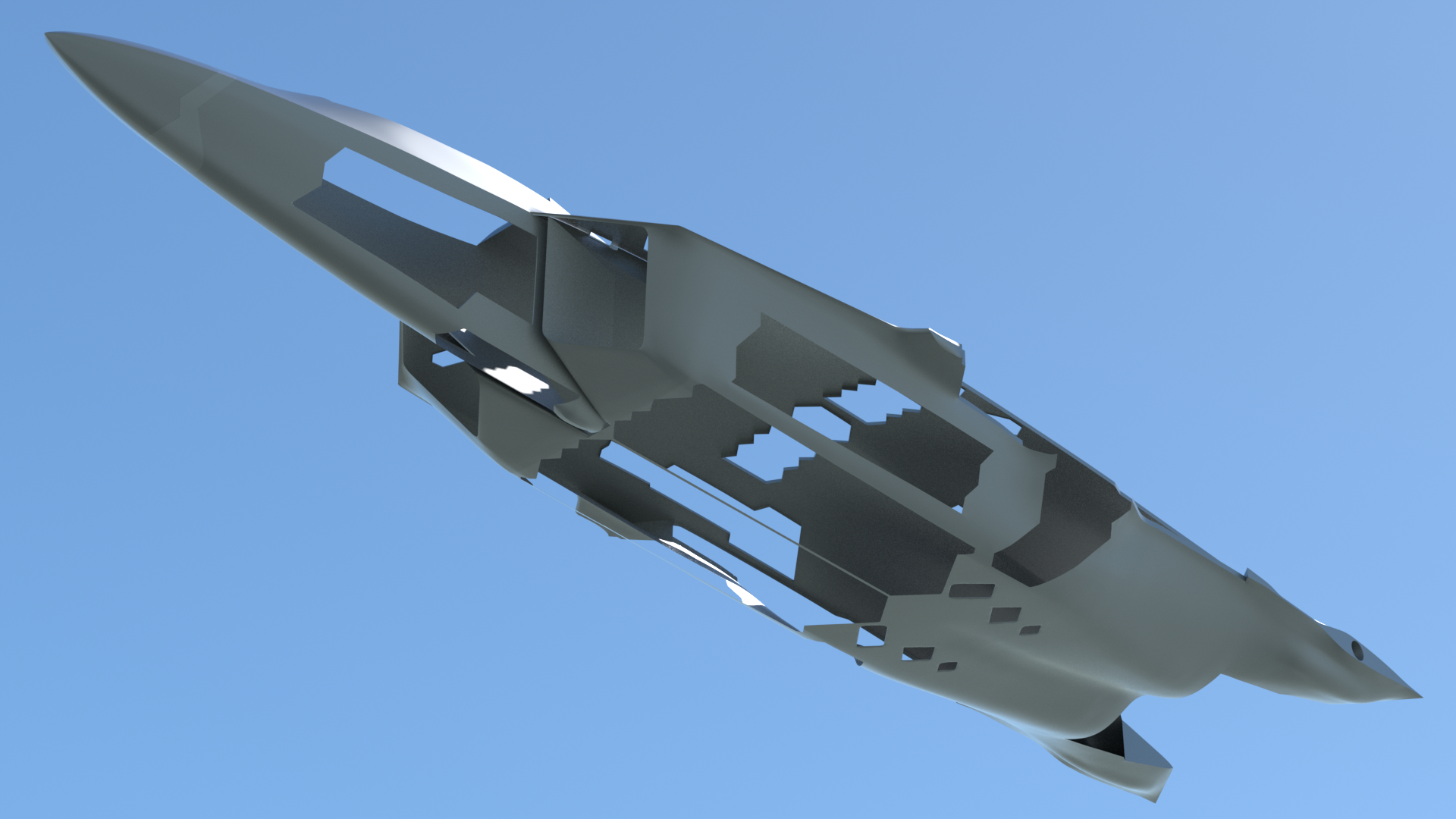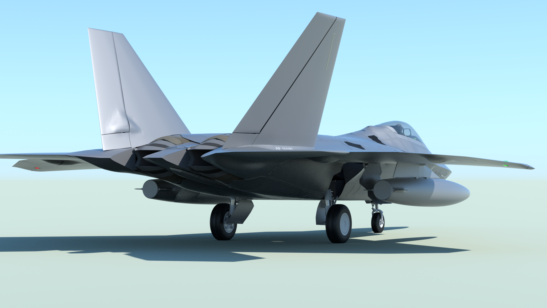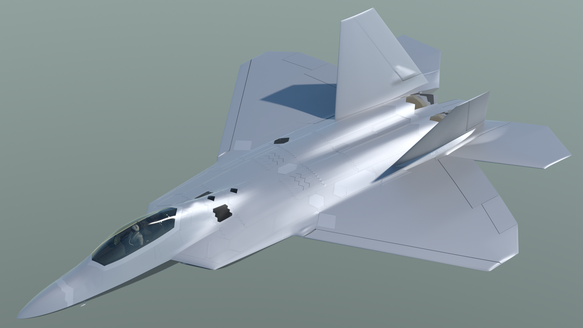 Click here to see a turntable-style animation of the airframe, followed by a brief "flyby/zoom climb" test animation, using an imported sIBL environment.