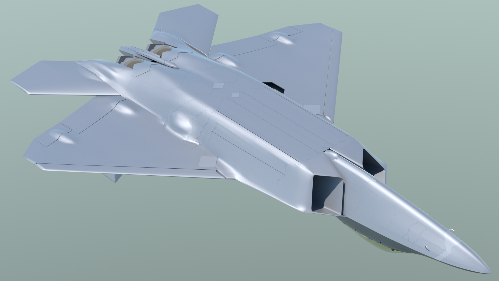 - Exterior was completely rebuilt, using Catmull-Clark subdivision surfaces ("Psubs", in MODO) During that process, it was separated into more logical sections, to emulate the major assemblies so that they resemble what Lockheed Martin did with the actual aircraft. The benefit of that is more realism in general, and also so that later on, I can produce renders that show the aircraft in it's early "modular" assembly state.