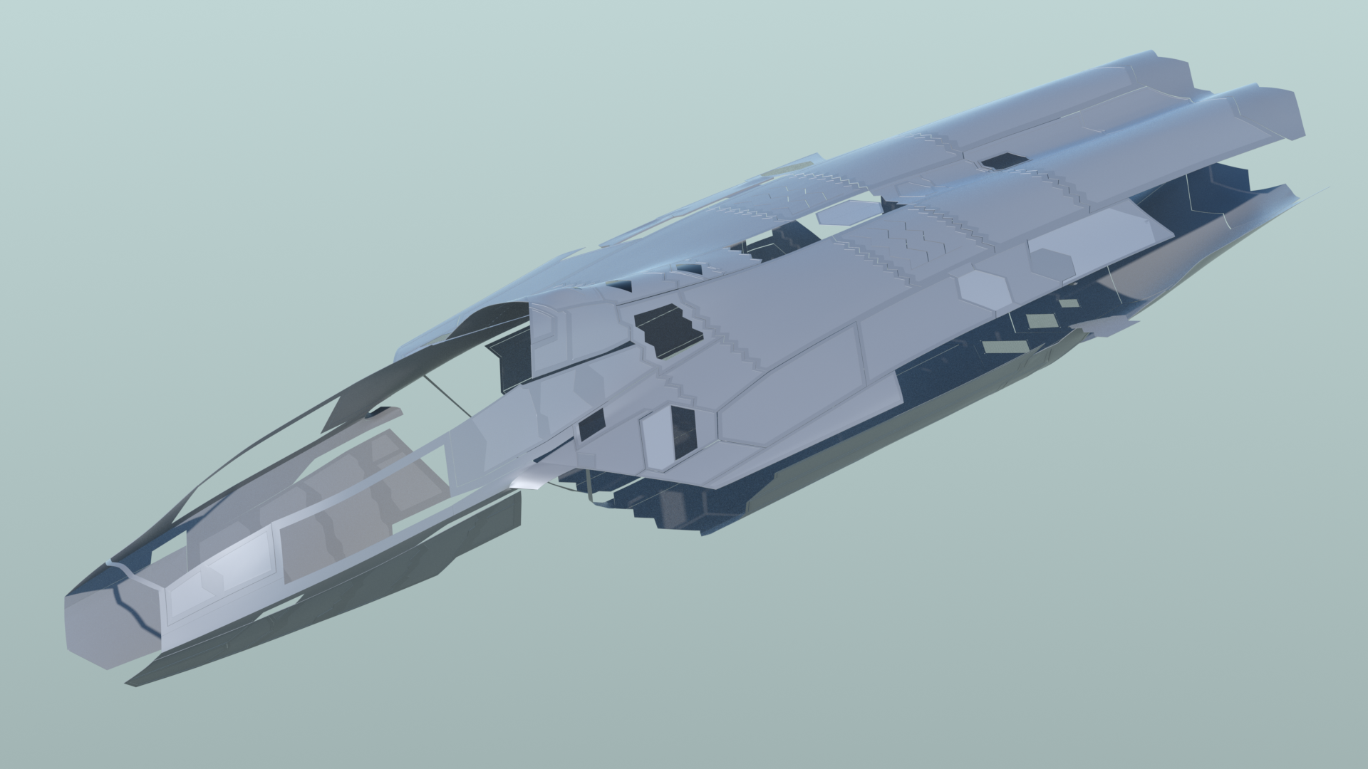 The next two renders give you a clear view of how many exterior panels I've added, with the fuselage turned off. As you can see here, nearly the entire exterior skin has been covered.