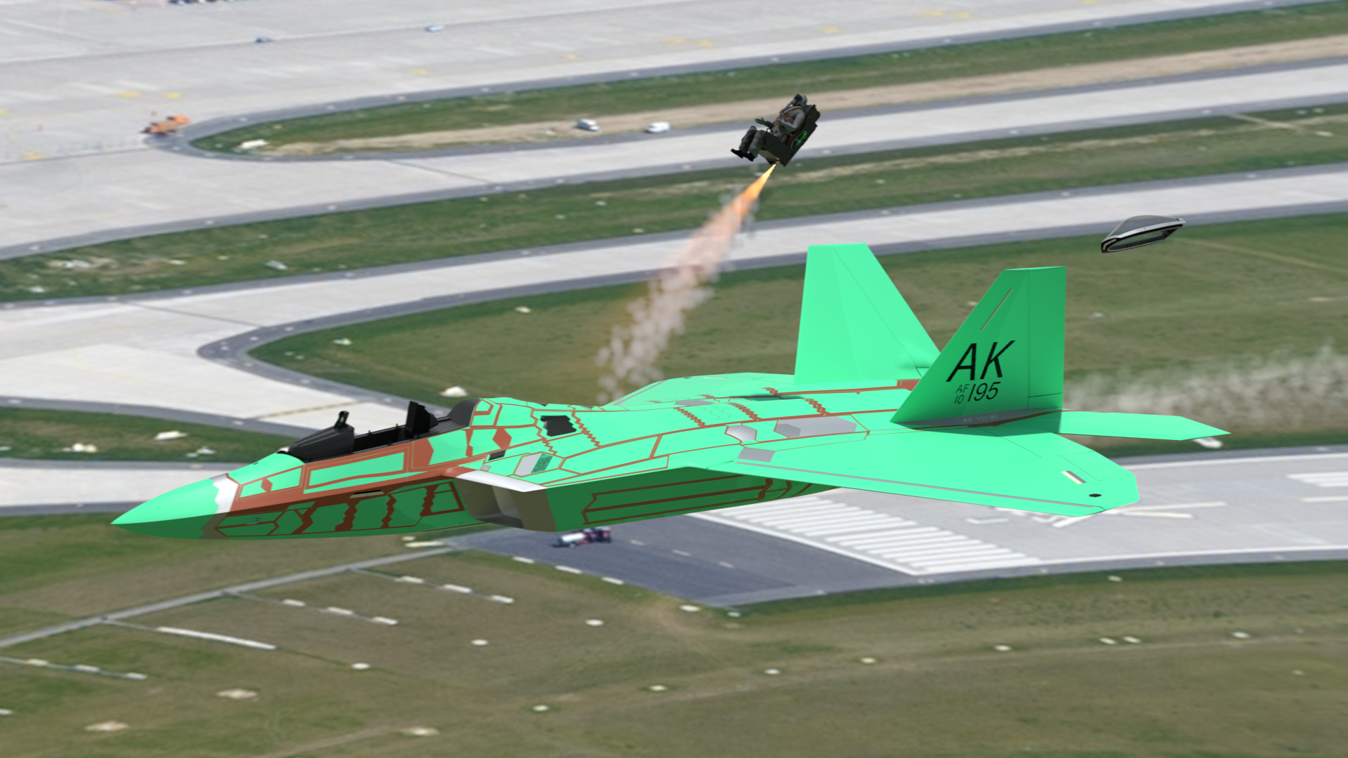 I've done some work on the ejection sequence for the Raptor. Everything is working, but I have some timing issues to work on, as the project moves forward. Here's my first (5-second) animation test.
